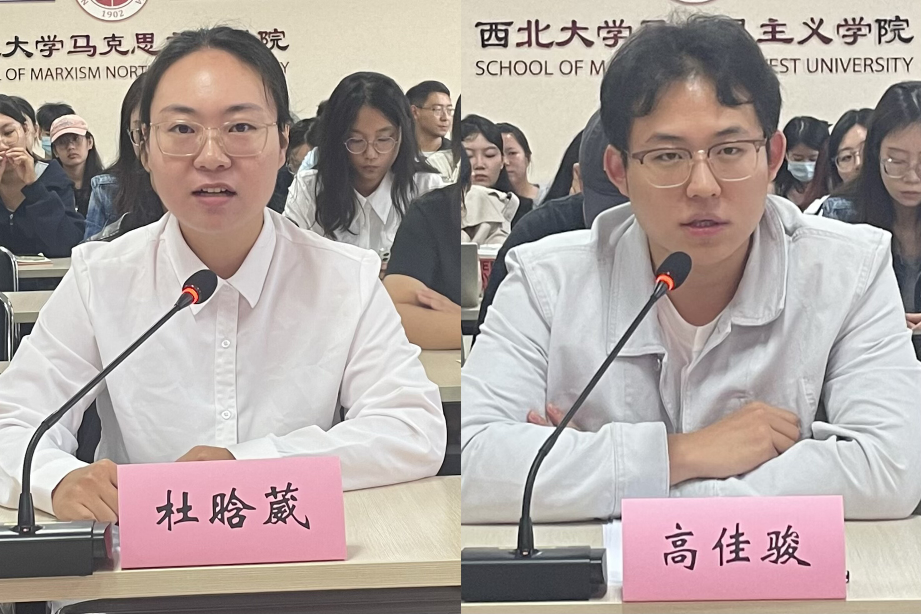 随后,2025级博士研究生杜晗葳、2025级硕士研究生高佳骏代表新生作了交流发言。与会师生围绕论文研读、学业发展、素养提升及学术拔高等方面进行了座谈交流,导师们对同学们提出的问题进行了详细解答。