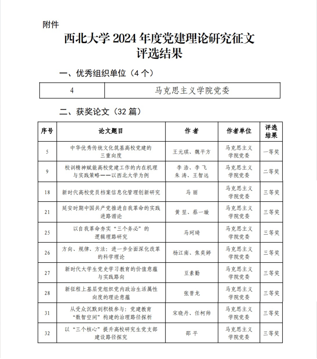 近日,学校发布了2024年度党建理论研究征文评选结果。我院党委荣获优秀组织单位,共10篇征文获奖,数量位居全校第一。