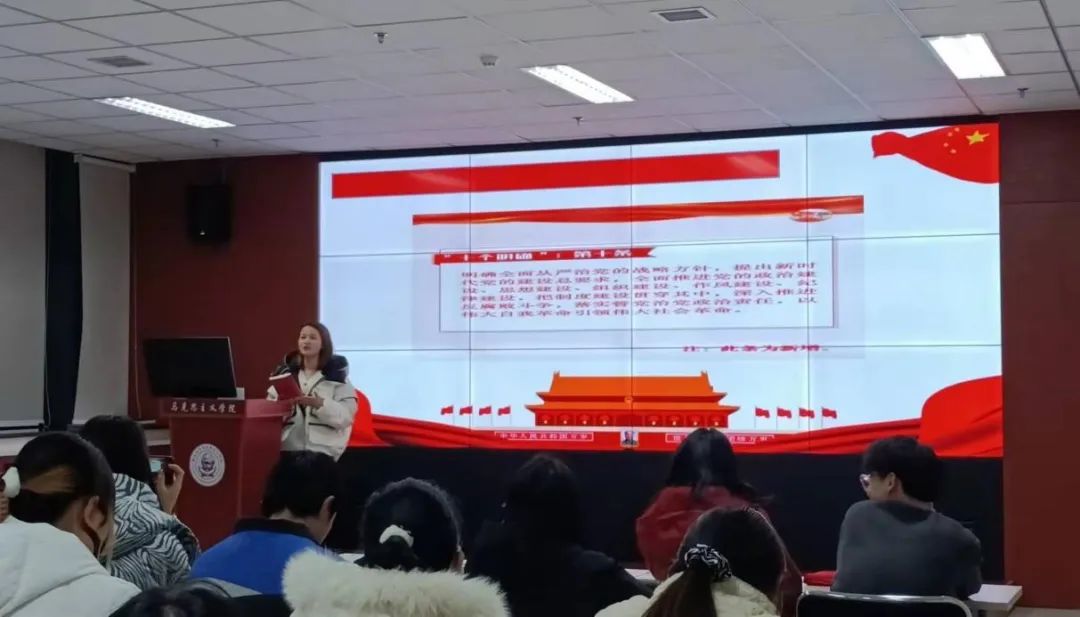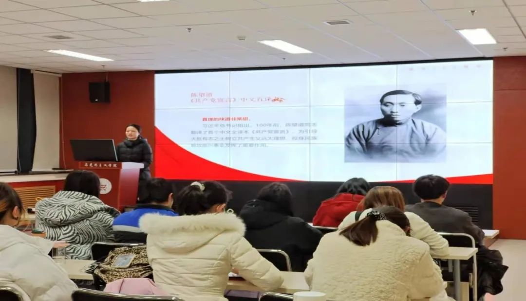 为深入学习党的十九届六中全会精神,推动我院党史学习教育走深走实,12月16日,“红桅杆”思政理论学习社团为我院青年马克思主义者培养工程第一期大学生骨干培训班(以下简称“青马班”)进行宣讲。本次宣讲的主讲人为2020级思想政治教育专业的硕士研究生毛苓萱、刘梅梅和2021级马克思主义基本原理专业的硕士研究生申颖。我院第一期“青马班”全体成员参加了此次活动。