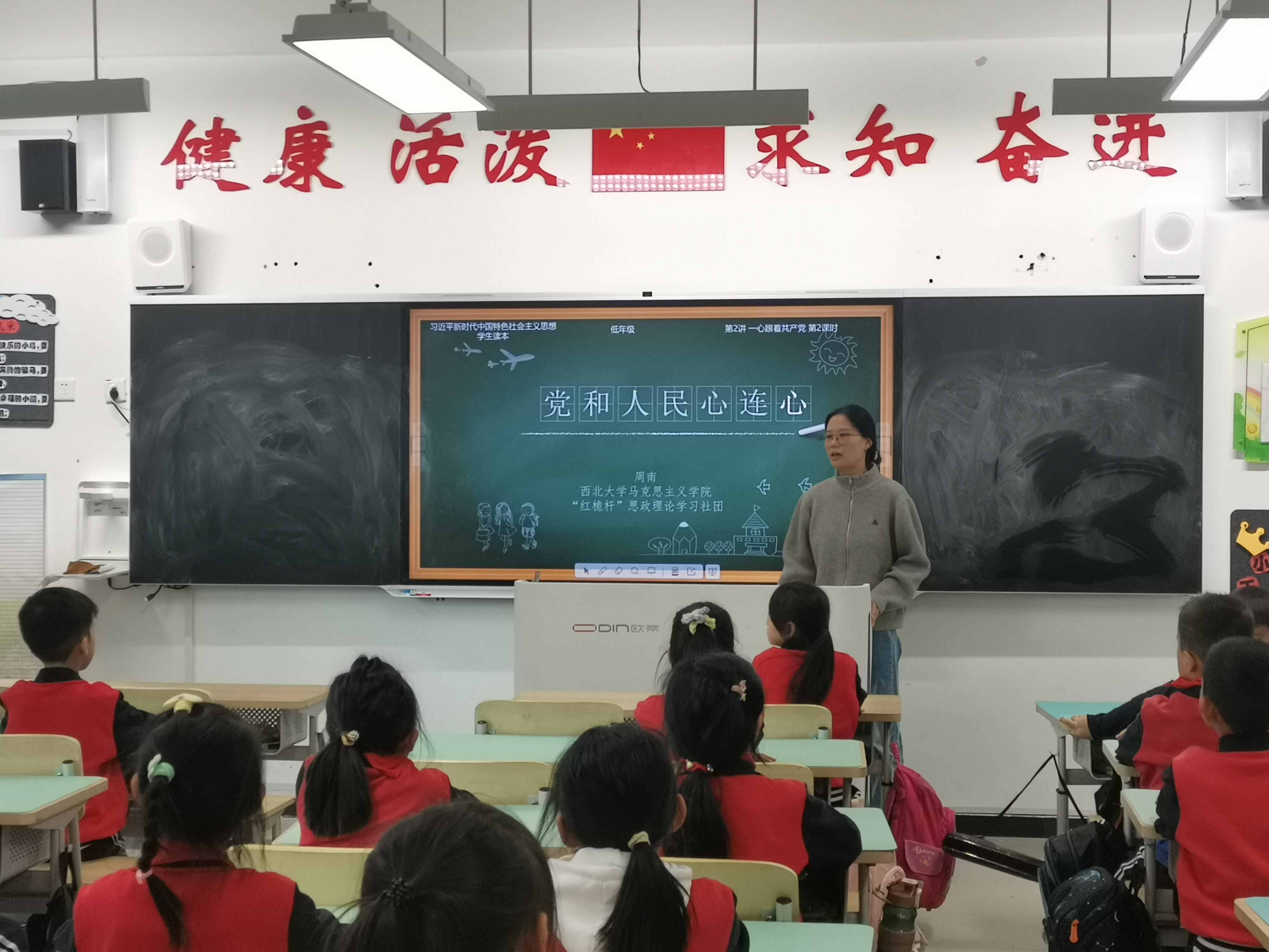 10月20日,我院“红桅杆”思政理论学习社团在西北大学附属小学,以《习近平新时代中国特色社会主义思想学生读本》(小学低年级)为主要内容,为二年级的小学生讲授思政课。主讲人分别是来自2022级和2023级的马克思主义基本原理、思想政治教育、马克思主义中国化研究与中国近现代史基本问题研究专业的12位硕士研究生。