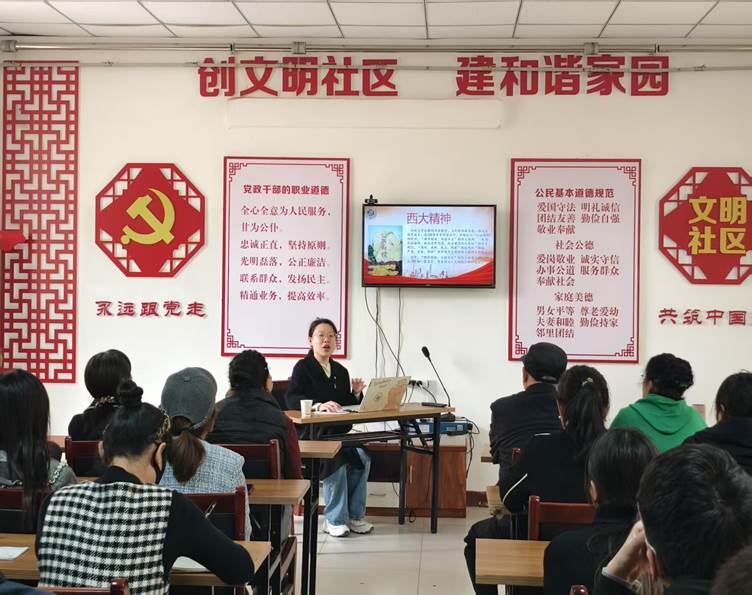 贾杰焜以《纪念先西大英烈谢葆真》为题,以西大精神引出了谢葆真同志强烈的爱国之情,讲述了西大英烈谢葆贞的英雄事迹。并且值此清明节来临之际,与社区各位干部群众们一同缅怀英烈,弘扬爱国主义精神。