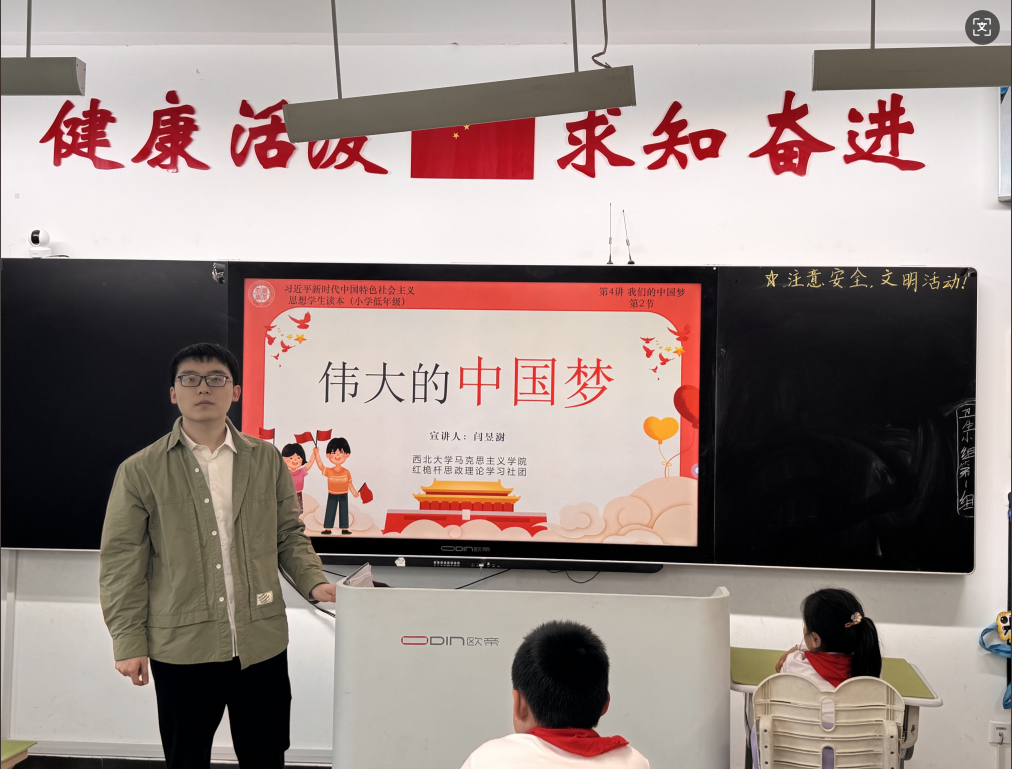 4月21日,我院红桅杆思政理论学习社团在西安市长安区第一小学实验小学,以《习近平新时代中国特色社会主义思想学生读本》(小学低年级)为主要内容,为二年级的小学生讲授思政课。主讲人分别是来自2023级和2024级的马克思主义基本原理、思想政治教育、马克思主义中国化研究与中国近现代史基本问题研究专业的13位硕士研究生。