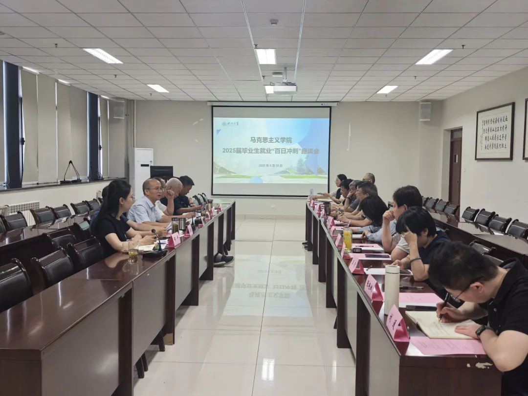 5月28日下午,我院举办2025届毕业生就业“百日冲刺”座谈会。我院领导班子成员,研究生导师,学工、行政和党务有关工作人员参加会议,会议由院长何博主持。
