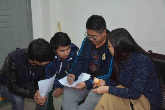陈丹阳和郝瑜瑜让部员们自由分组,共同讨论针对支教主题的看法,部员们都积极参与,互相发表自己的见解。通过这样的交流形式,使得部员们不仅加深了对讨论主题的认识,并加强了自己的沟通表达能力,对于促进部员间的关系也具有很大的作用。