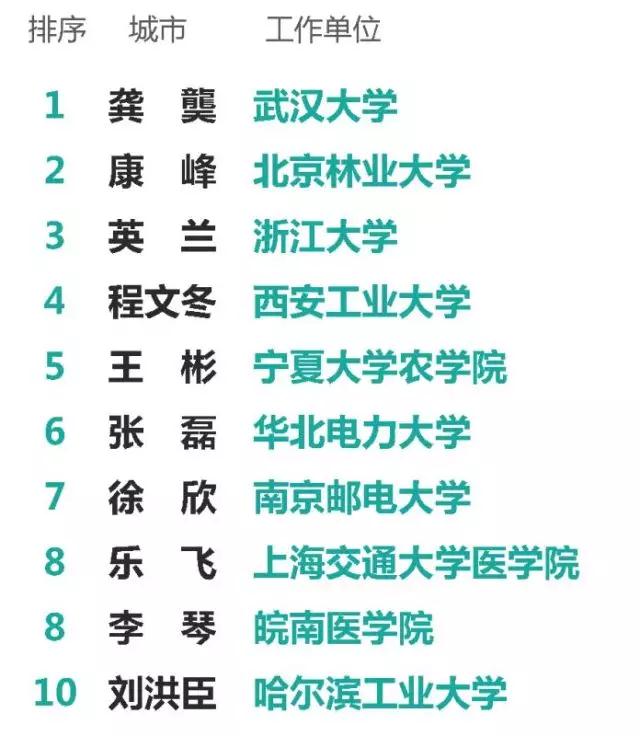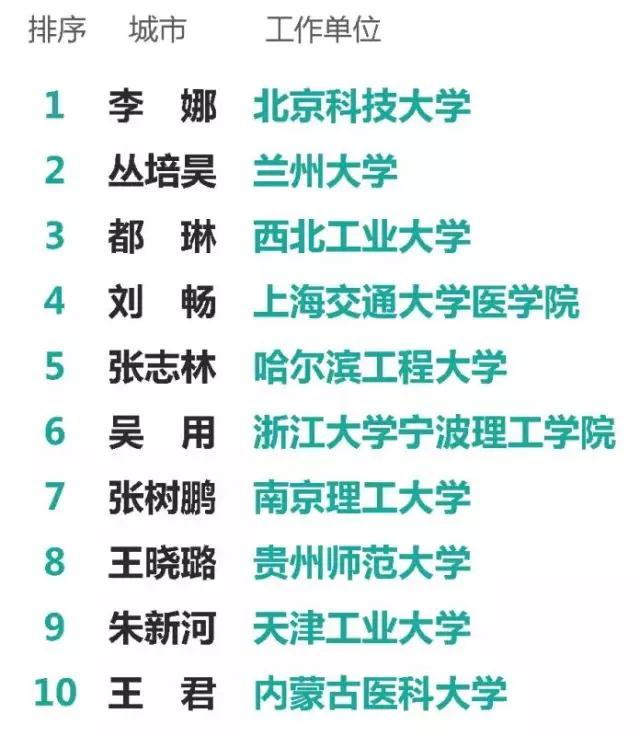 附理科组和工科组十强名单