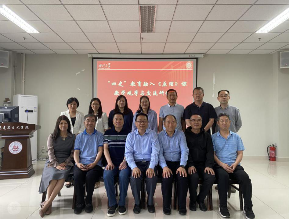 为深入贯彻习近平总书记关于党史、新中国史、改革开放史、社会主义发展史学习的重要讲话和指示精神,把“四史”教育有机融入马克思主义基本原理概论课(简称“原理”)教学,推动“原理”课教学改革创新,激发学生爱国热情,西北大学马克思主义学院于6月18日在西学楼1106开展了“四史”教育融入“原理”课教学观摩与交流研讨会。