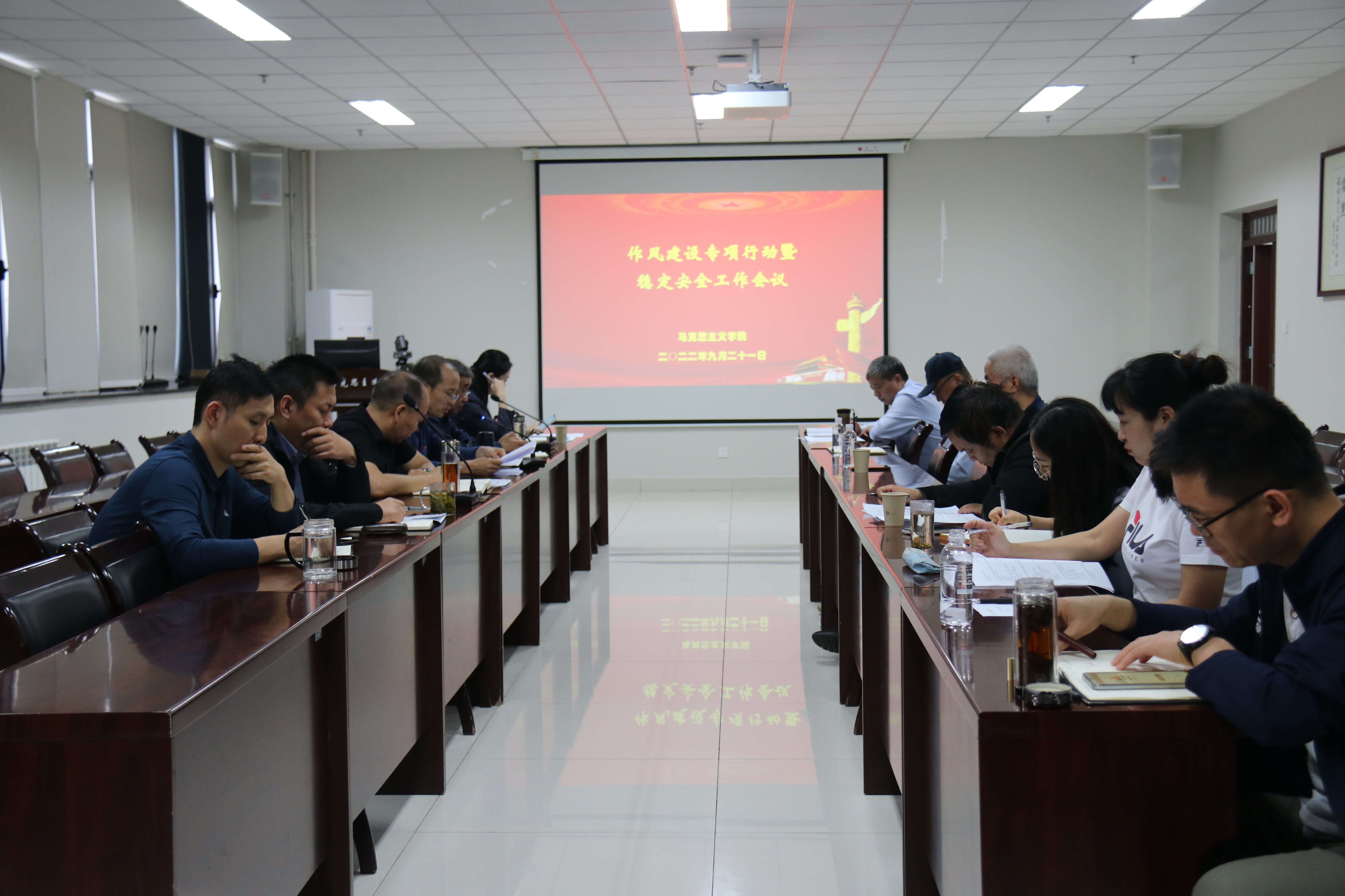 9月21日下午,我院召开作风建设专项行动暨稳定安全工作会议,学院党政领导班子成员、科级干部、工会主席、各教研部主任、教职工各党支部书记等参加会议。会议由院党委书记韩凯峰主持。
